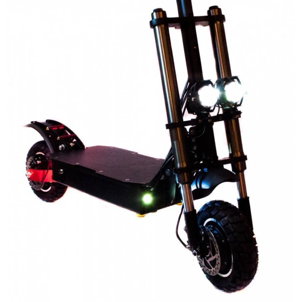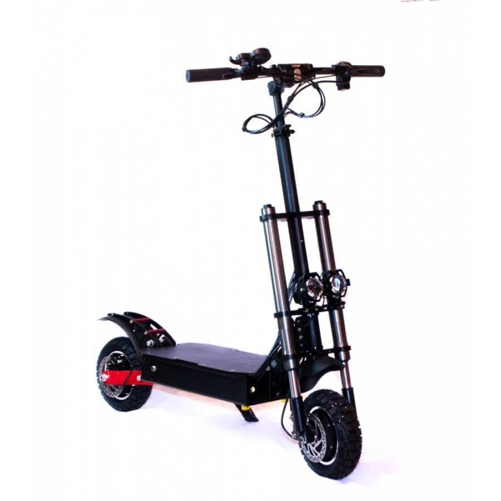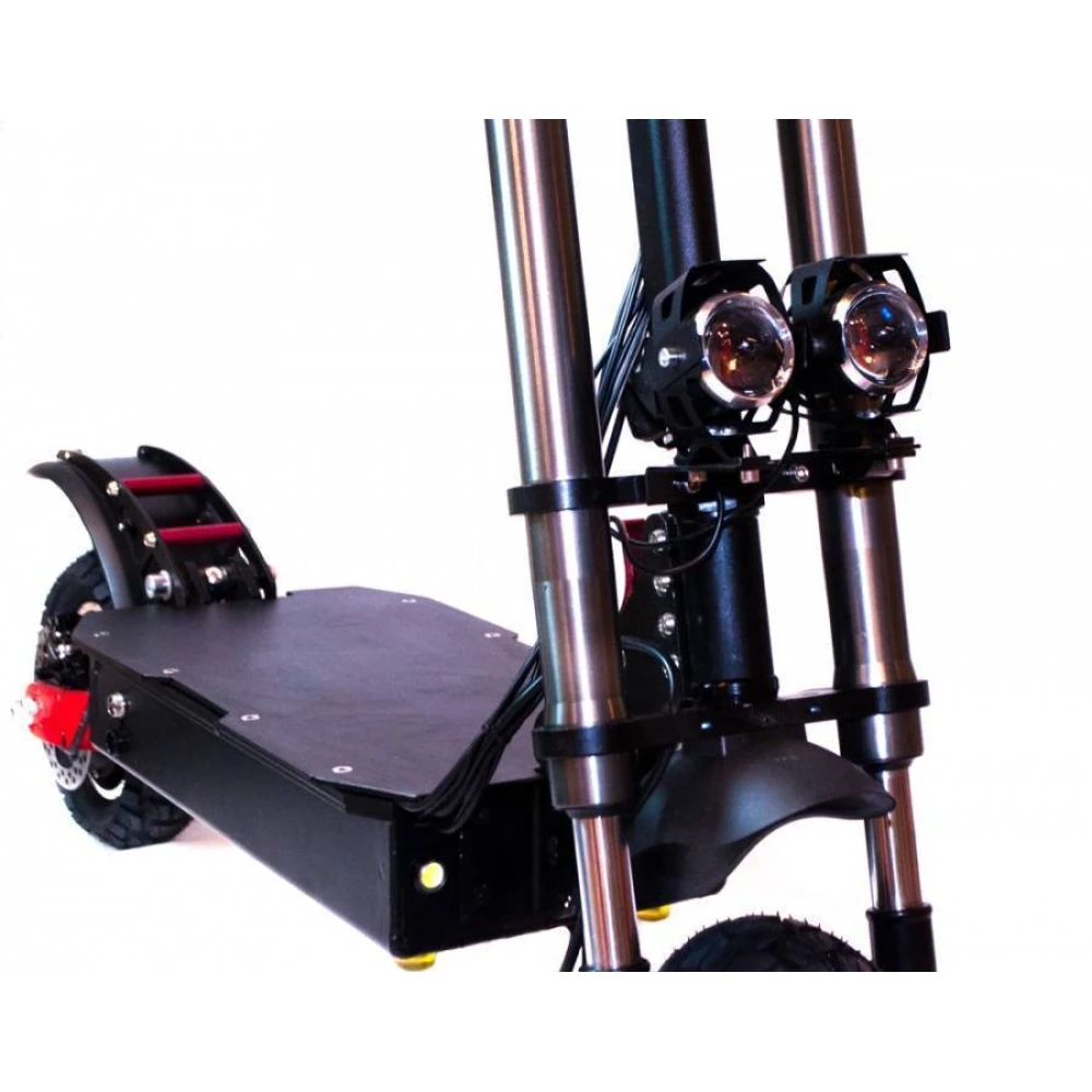 Электросамокат CurruS R11 lite с первого взгляда производит впечатление своим брутальным дизайном. Надежная и качественная модель идеально подходит не только для городских прогулок, но и для экстремальной езды по бездорожью. Мотовилка обеспечивает надежный контроль движения, а высокий клиренс позволяет легко преодолевать препятствия и неровности дороги. Колёса с глубоким протектором гарантируют надежное сцепление с различным дорожным покрытием, будь то гладкий асфальт, лесная тропинка или грунтовая дорога. Два мотора общей мощностью 2400 Вт позволяют быстро и плавно разогнать электросамокат до 60 км/час. При этом гидравлический и дисковый тормоз чутко реагируют на команду райдера и способны быстро остановить транспортное средство в экстренной ситуации. Во время длительных прогулок не придётся беспокоиться о подзарядке - литий-ионный аккумулятор обеспечивает запас хода до 70 километров на одном заряде батареи. Для более быстрого восстановления энергии производители предусмотрели два зарядных гнезда. Данная модель оснащена бортовым компьютером, данные которого отображаются на ярком электронном дисплее. Даже во время поездки райдер может быстро оценить основные параметры движения. Электросамокат CurruS R11 lite имеет складную конструкцию, что позволяет легко перевозить его в автомобиле или общественном транспорте.