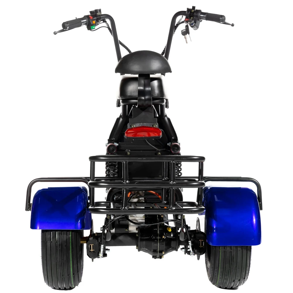 CityCoco GT X5 Trike в синей расцветке - это потрясающий электроскутер, который отличается высокой производительностью, устойчивостью и продуманным дизайном. Скутер с тремя колесами обеспечивает максимальную устойчивость и безопасность во время езды.