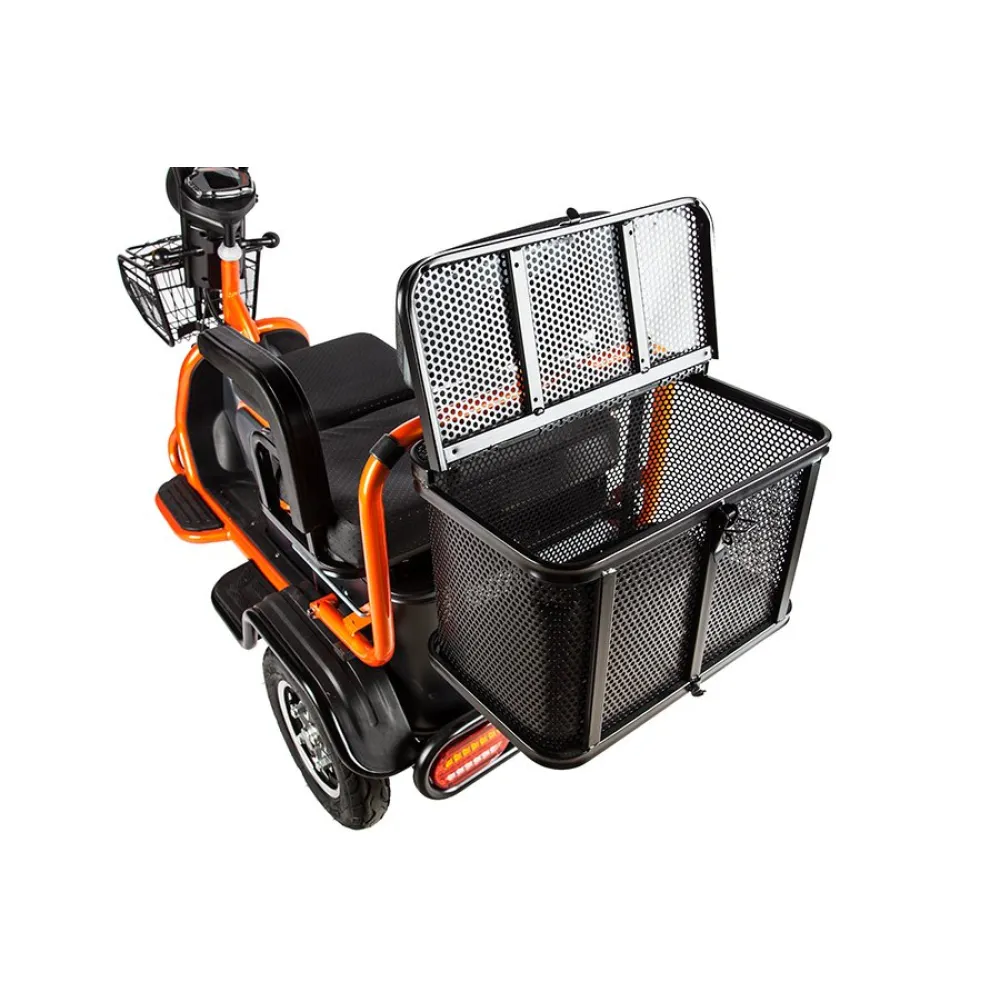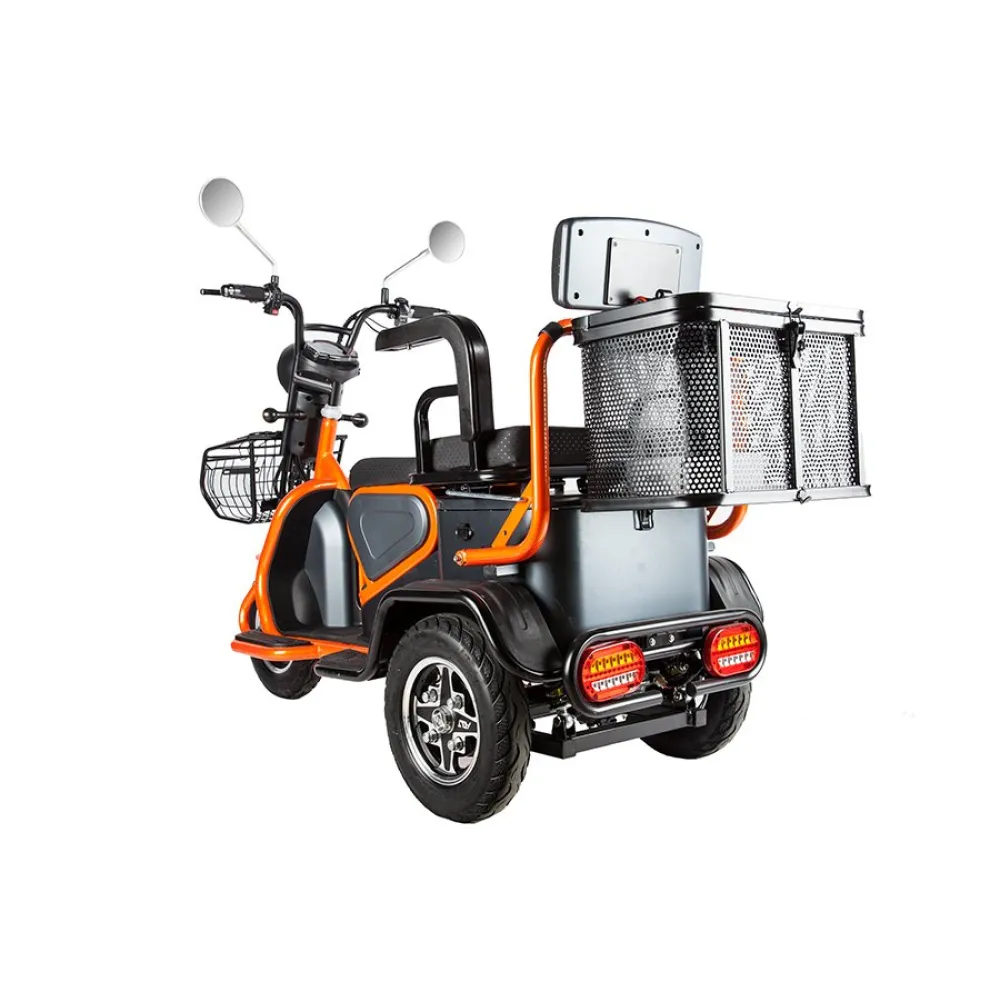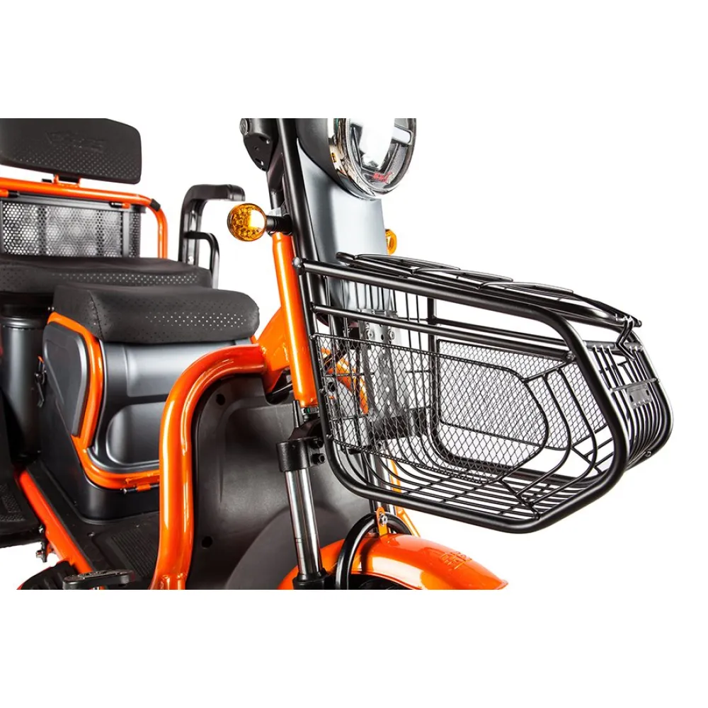 Повышенная устойчивость объясняется широкими колесами с протекторным рисунком для лучшего прохождения тс по неровной дороге. Модель обработана специальным сверхпрочным покрытием, надежно защищает от повреждения металла коррозией и различных деформаций. Максимальное прохождение расстояния на одном заряде обеспечивается долговечным аккумулятором электротрицикла. Приятной неожиданностью пользователю станет наличие охранной сигнализации с фирменными брелоками для защиты от угона.