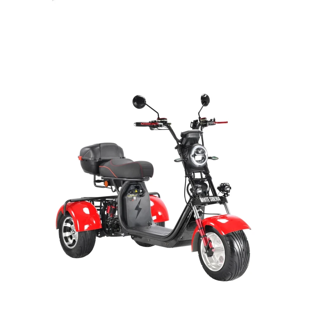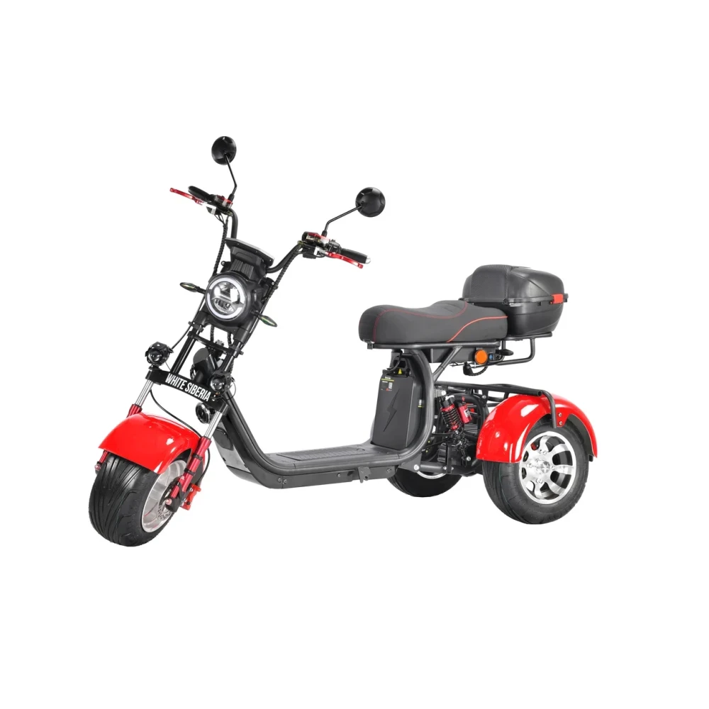 Трехколесный скутер CityCoco WS-Pro 3000W Trike+ красный - быстрый городской транспорт с литыми дисками и широкими колесами.