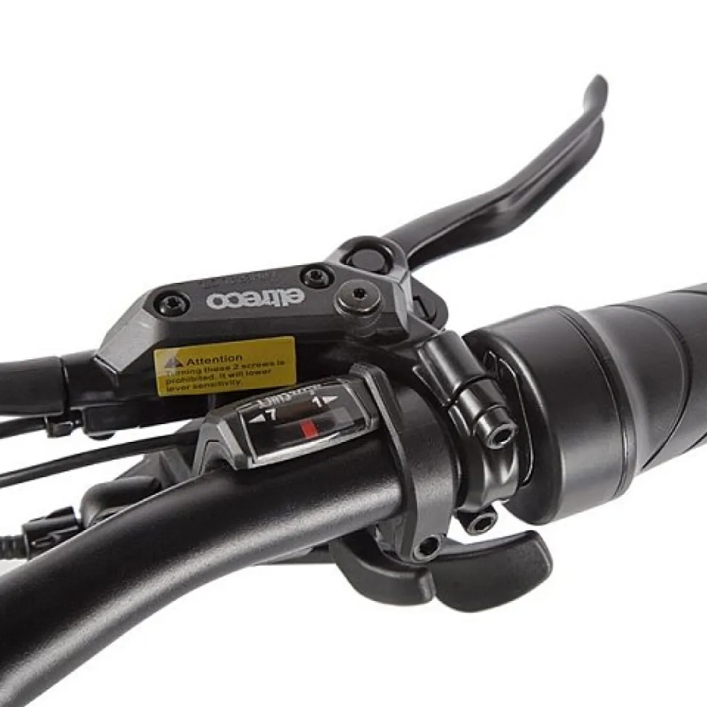 Установлены передние и задние гидравлические дисковые тормоза. На заднем колесе 7 звезд, семи-скоростной переключатель.