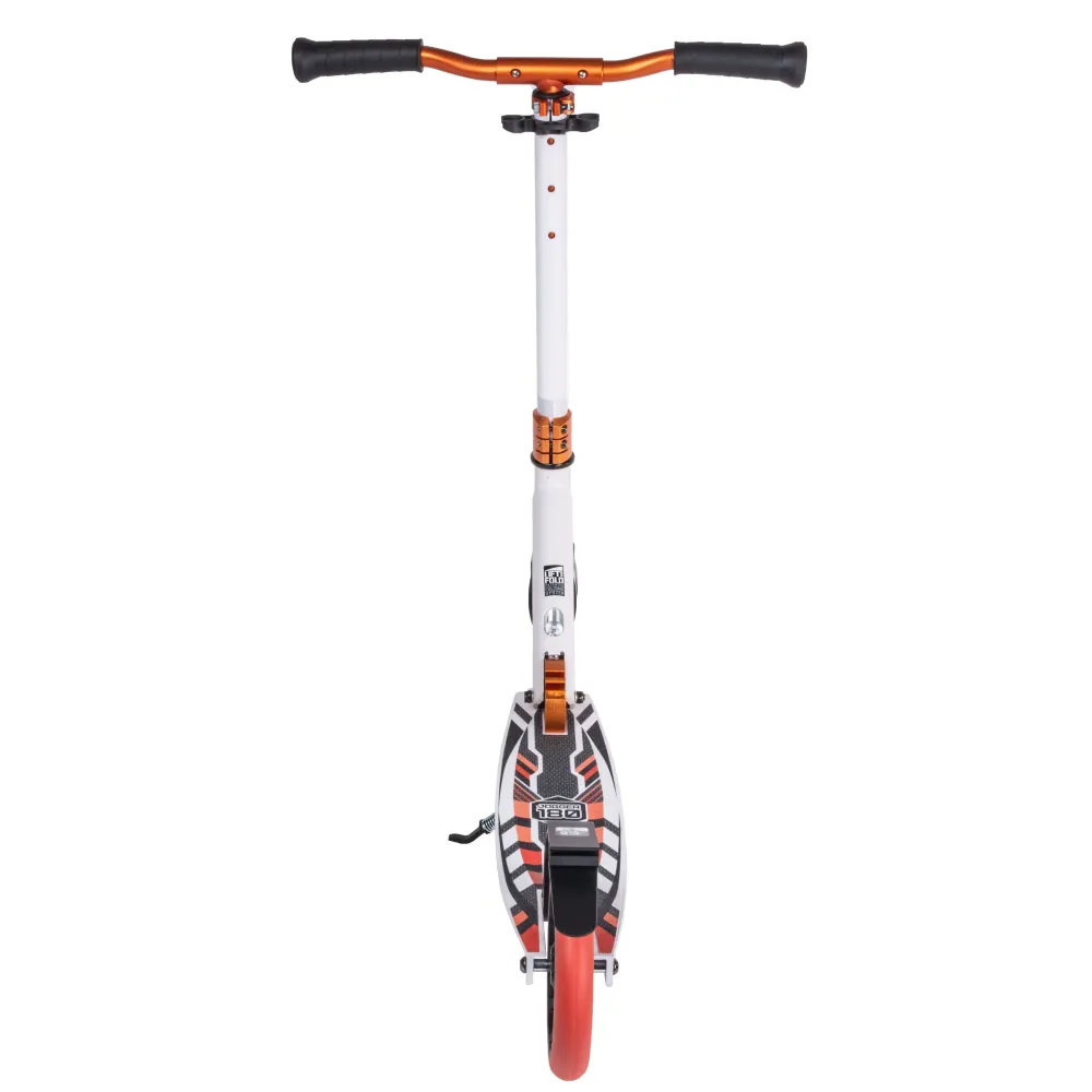 Колесная часть – полиуретановая, накатистая, размером 180 мм, в сочетании с качественными подшипниками Abec 7 гарантирует комфортную езду. Модель оснащена системой складывания Easy Fold, при необходимости может быть минимизирована до желаемых размеров.